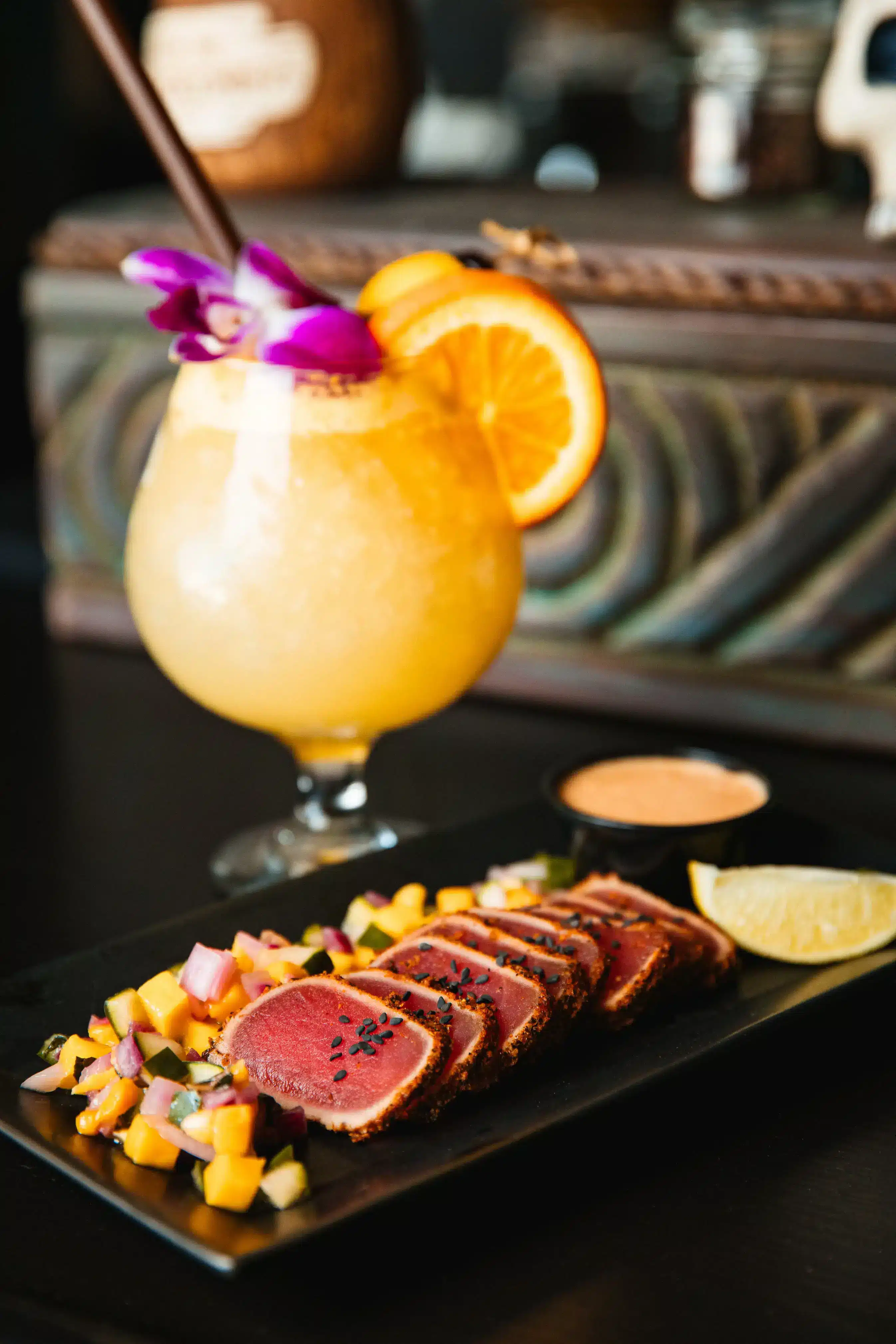 We are a restaurant and cocktail bar conveniently located on the first floor of the Cambria Hotel in Madeira Beach, just steps away from the beach. Escape with waterfront dining, Polynesian flavors and delicious tropical cocktails. Favorites include Pupu platter featuring hand-made crab rangoon, chicken satay and sticky rib skewers and signature wings. We also feature tempura cauliflower, a variety of fried rice options, fresh grouper and an array of gourmet burgers. Our drinks begin with the freshest ingredients by juicing our citrus daily and making many of our syrups in house using top-quality spirits to create amazing cocktails like the classic Mai Tai, innovative Zombie and delicious Nutty Chi Chi. Our offerings are sure to please every taste – from hardcore Tikiphiles to adventurous locals, because “If you can’t get to paradise, I’ll bring it to you.”